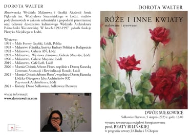 "Róże i inne kwiaty", wystawa malarstwa i rysunku towarzysząca recitalowi fortepianowemu prof. Beaty Bilińskiej , Dwór w Sułkowicach, Sułkowice Pierwsze